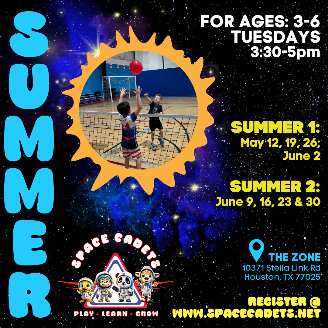 Space Cadets is a motion and socialization program for 3 to 6-year-olds. It will have an emphasis on volleyball with a space theme.